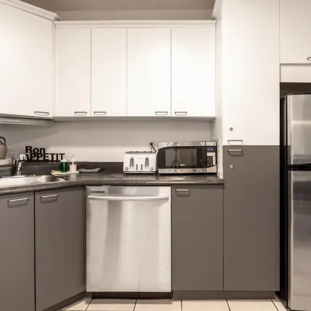 Apartmán Apartmán Le Relax Fraichement Renove Au Coeur De Quebec nabízí kompletní kuchyni i pokoje s pohovkou, psacím stolem, přístrojem na přípravu kávy a čaje. Ubytování se nachází ve čtvrti Centre-Ville, asi 5 minut jízdy od Královské náměstí.